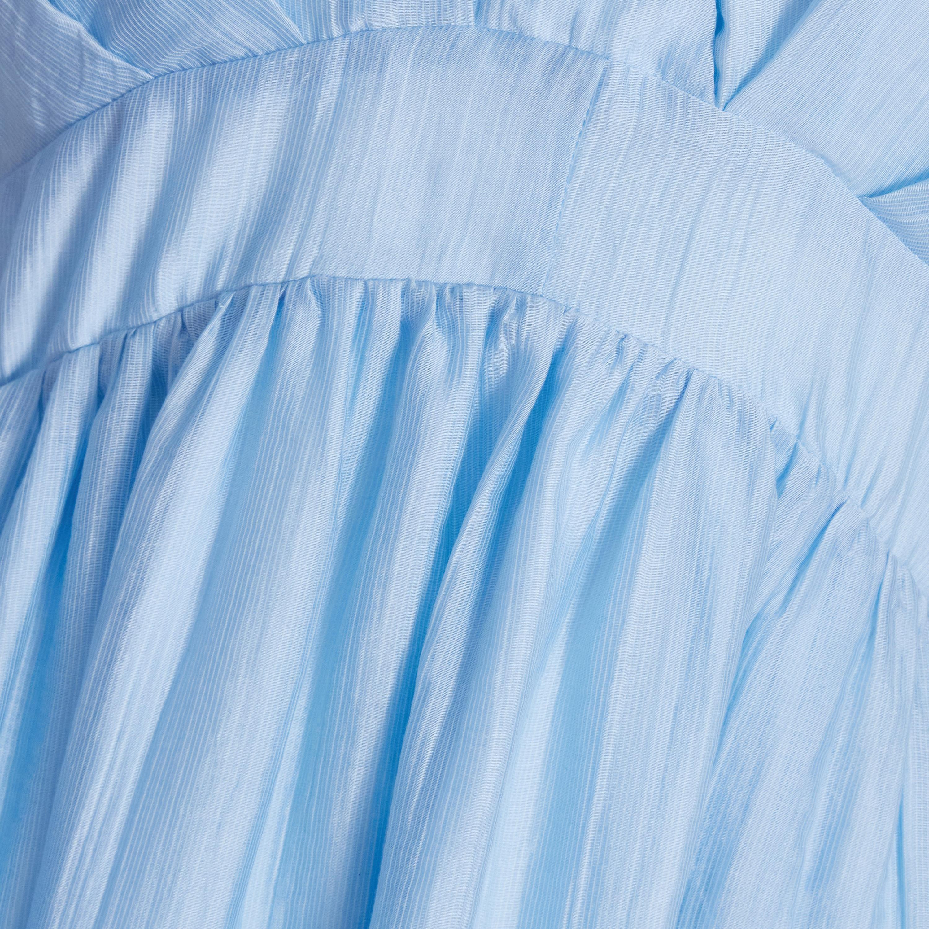 أناقة خالدة بجمالها الأزرق الأخّاذ. نسيجها المنسوج يُضفي عمقًا وجاذبية، بينما يُضفي خط العنق على شكل حرف V لمسةً أنيقة. تفاصيلها المُجمّعة تُضفي لمسةً من الحركة والأناقة، مثالية لضيوف حفلات الزفاف أو المناسبات الخاصة.