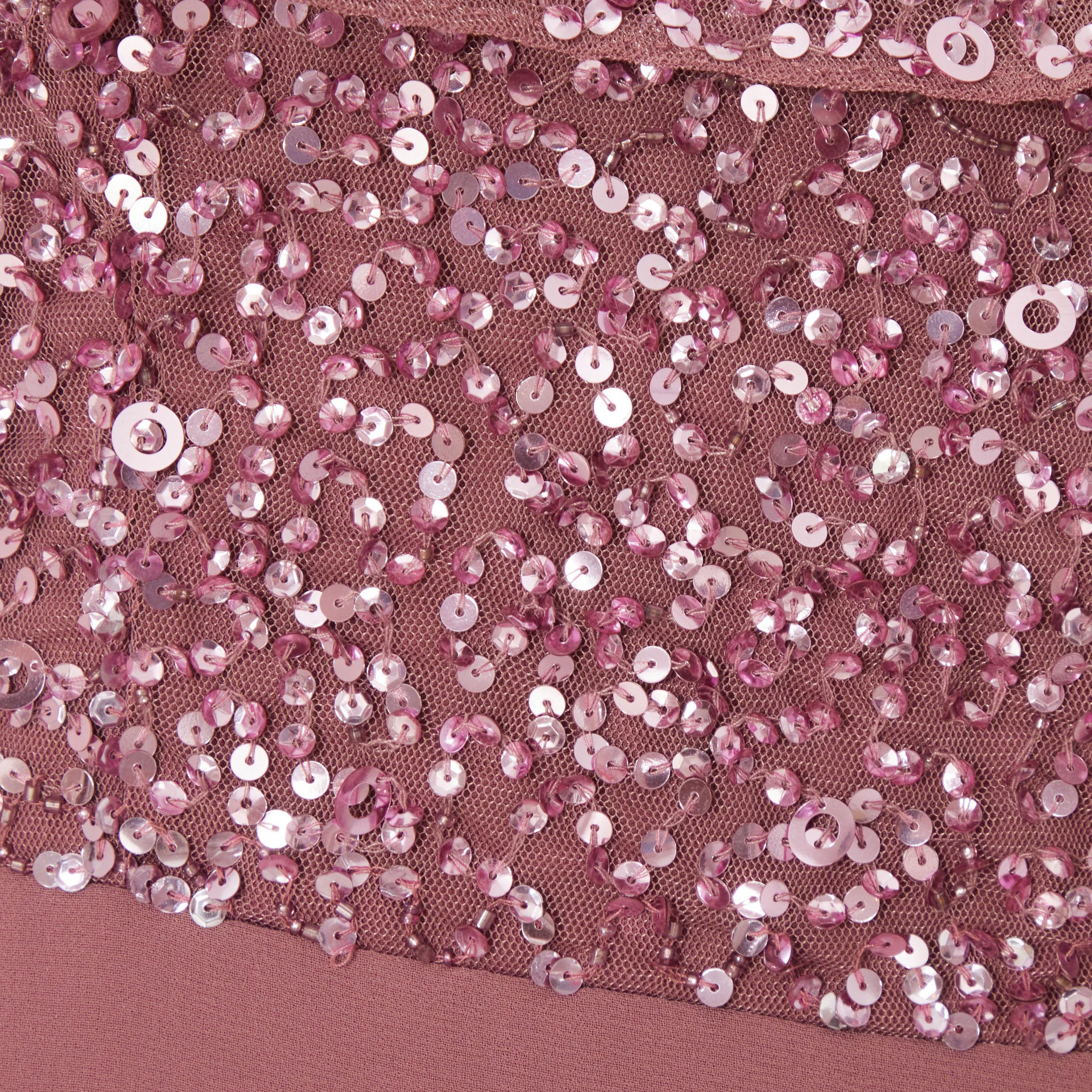 Quiz Pink Sequin/Chiffon Bardot Midi Dress