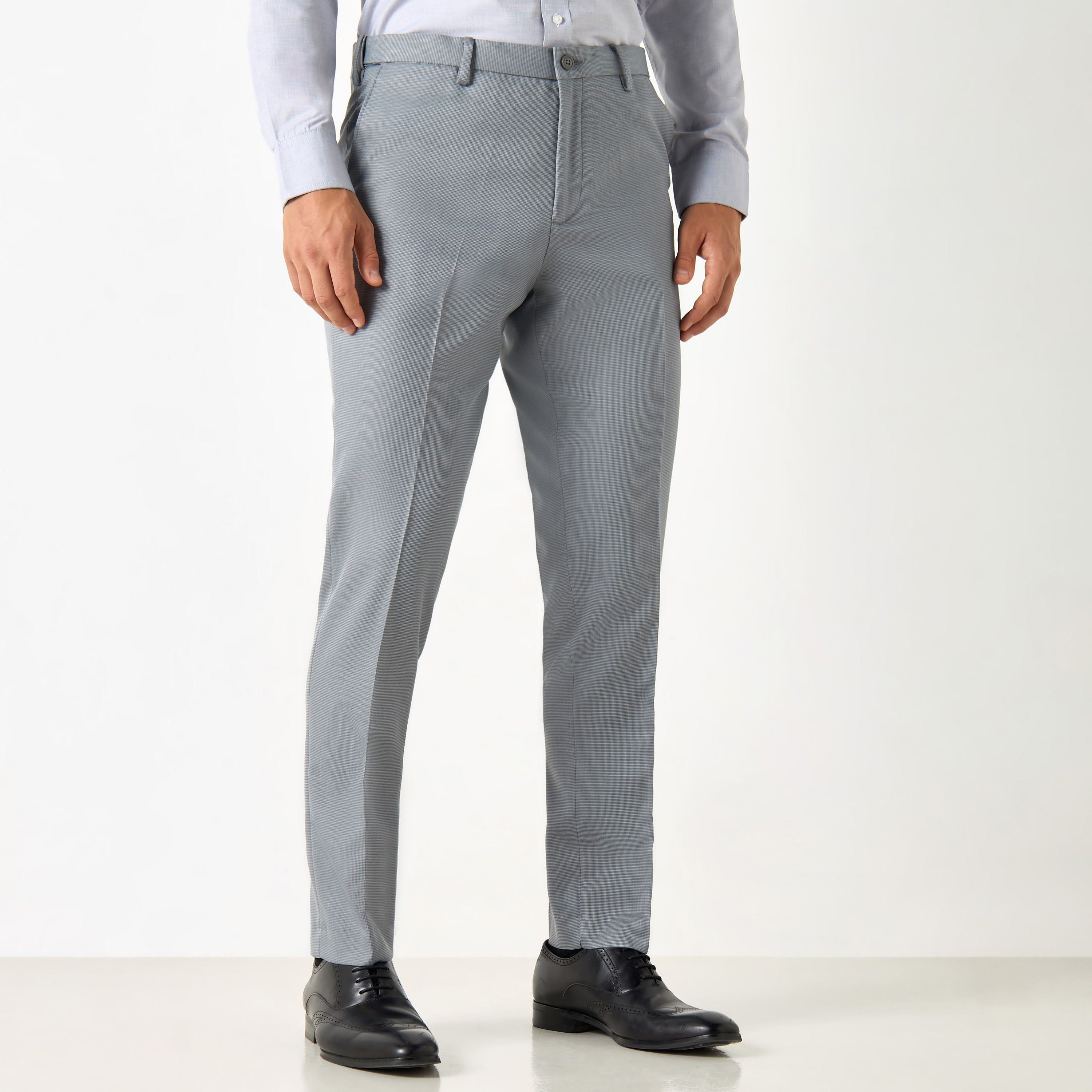 Textured Slim Fit Trousers with Flexi Waist and Pockets
