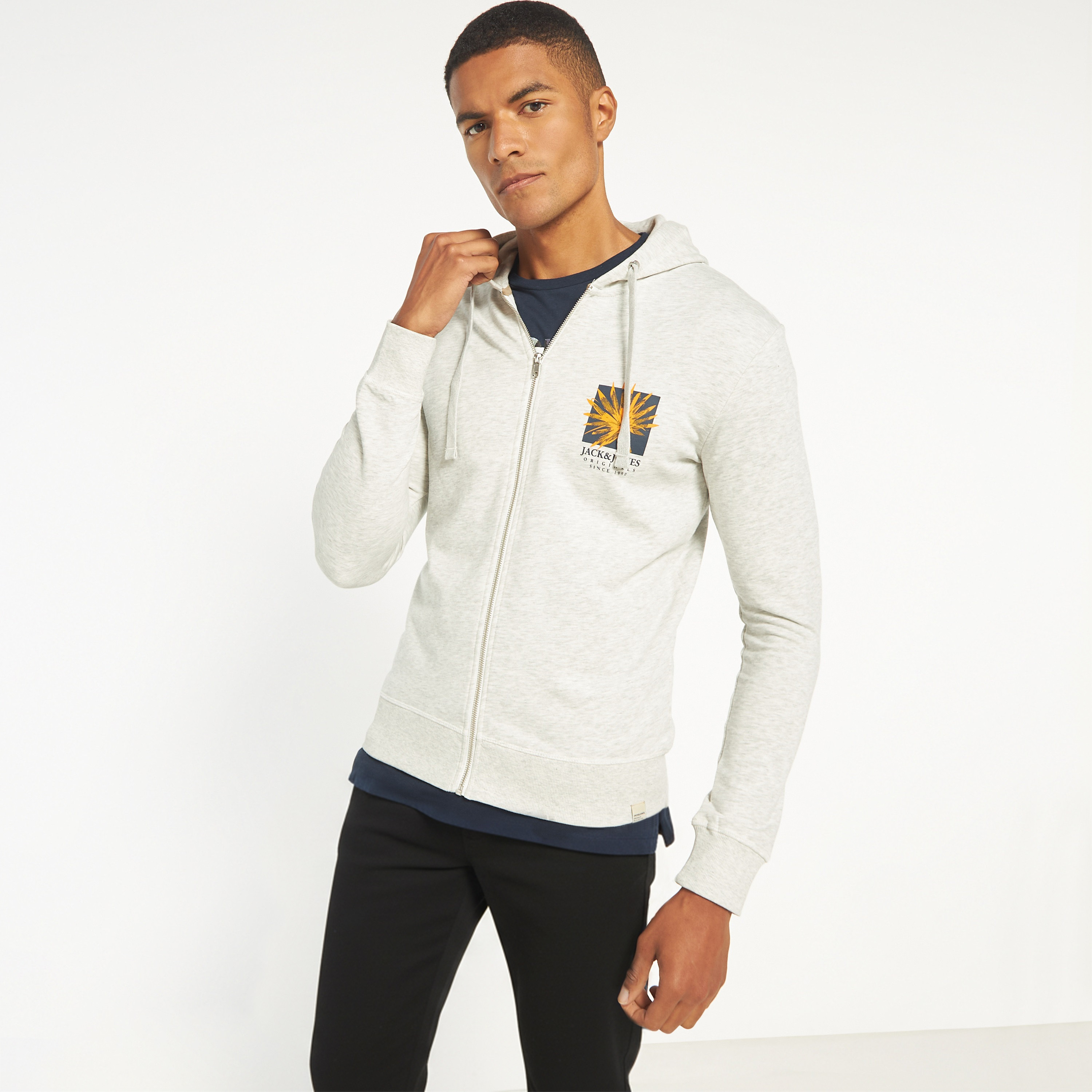 Jack & Jones Logo Long Sleeves Hoodie with Zip Closure