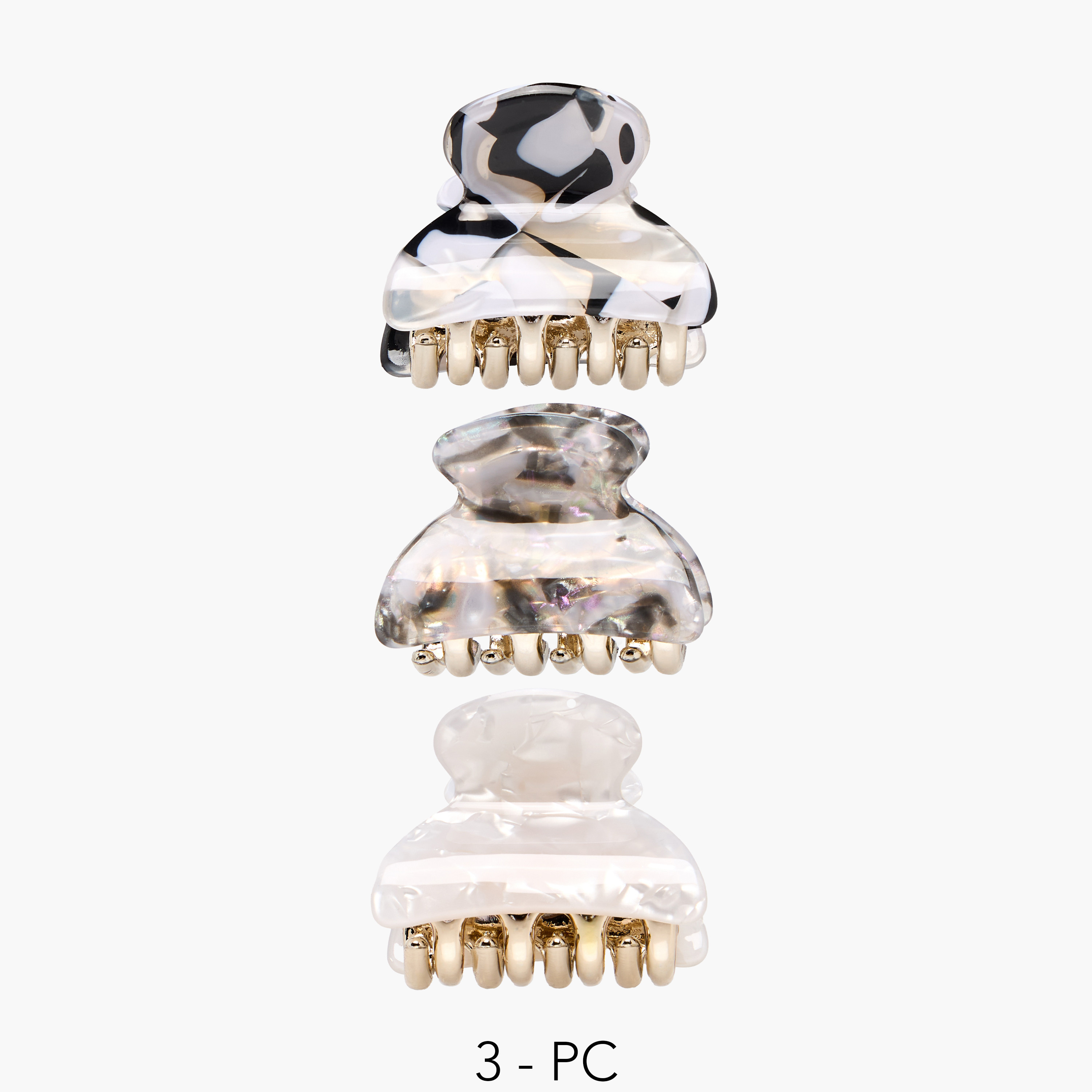 Pack of 3 Curved Hair Clamp with Pearl Finish