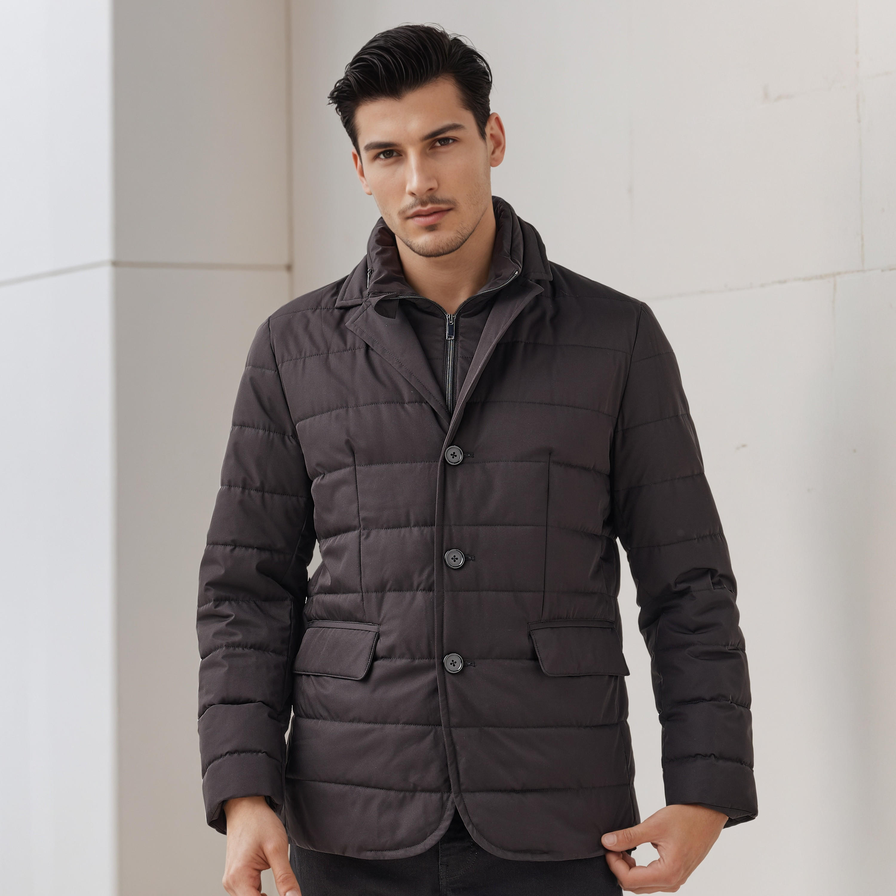 Chest 97 cms, Waist 79 cms, Hips 85 cms, Height 185 cms